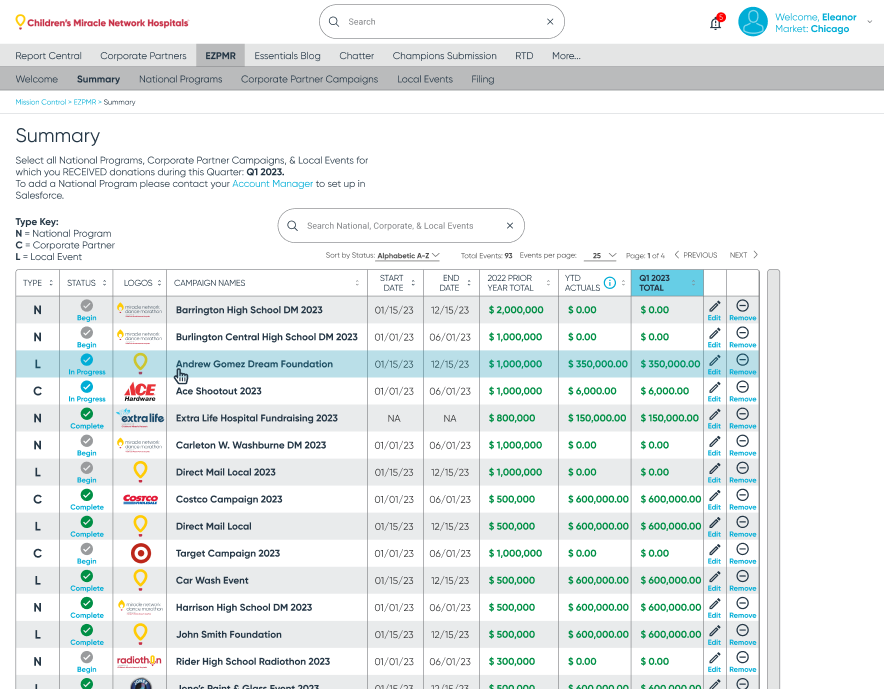 • Prominent Search enabled users to see specific reporting details like upcoming Corporate Partner campaigns.