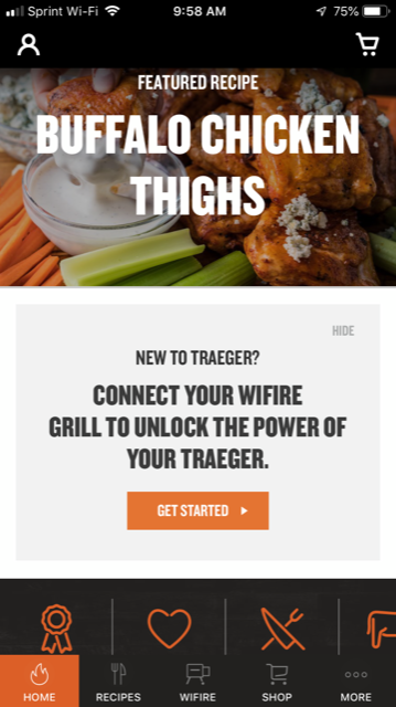 GOAL: Design a user experience that invites new and returning app users to: • Simplify the technology of using their grill. • Engage with users by providing them relevant, customized tools to optimize their grilling experience. • Increase consumable product sales through the app. • Teach customers how to master their Traeger Grill.